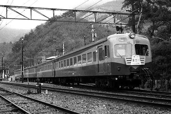 新幹線を初めとする電車列車の長距離運用の礎を築いた車両といえば、お馴染みの 正面2枚窓、湘南フェースの元祖80系湘南電車ですね。電車ですから台車には当然 モーターを付け、床下には主幹制御装置やら抵抗器やらを装架していますが、車体は 両端に乗降ドアを配し客室と乗降デッキの間は壁で仕切られたどこから見ても完全な 客車仕様で、優等列車として運用する事も考慮された車両でした。初めは15両編成で 準急”伊豆”や”いでゆ”として東海道の花道で活躍しましたが、153系が新造されると 地方へドサ回りへ。そんな列車の一つが、今回の「富士川」、ご承知のとおり身延線を 更に、1995年には383系の特急に昇格っと言うより、急行料金が特急料金に《昇格》 (かな???)救いはひらがな表記とはいえ、このネームが今も健在な事ですかね。