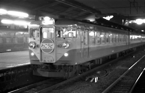今週のヘッドマークを御覧のミナさん目をほそ〜くして見てくださいね。 ほ〜らみえてきたでしょ「わこうど」って。夜行で目が覚めた京都駅で 偶然遭遇、あわてて撮影、まぁご愛敬と言うことでゴカンベンの程を・・・ 修学旅行専用の167系を使用した「わこうど」のスジは東京−下関間に
