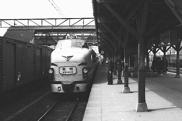 「有明」に引き続いての2度目の登場は、ボンネット「有明」!! 国鉄色(モノクロですが ・・・)のボン、やはり良いですねぇ。カラーでないのが貧乏思鉄!! ということでご勘弁を よる運転でしたが、次第に運転本数が増加し、ボンネット481系が一族に加わったのは 1975年のことでした。それにしてもこの写真、鹿児島本線のどこで撮ったのか全くわか りません(^_^;;;) かなり南の方だとは思いますが・・・ 誰か場所が判ったら教えてくだ さいな。現在は787系が主力で、停車駅もやたら多い「有明」ですが、未でもこの名前の ままで活躍しているのが嬉しいことです。九州新幹線が全線開業しても、ぜひこの名前 は残してほしいものですね。 (弊サイトと相互リンクして頂いている轍楽之路田駄様より八代ではとの情報を頂きました。) 鹿児島本線 八代駅 1976-1 |