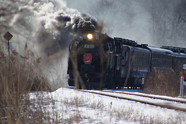 釧網線「SL冬の湿原号」でございます。通常はC11にDE15の補機で運用されている この列車も、撮影当日はDL無しのC11重連運転、運転区間も標茶〜川湯間延長の スペシャルヴァージョン。釧網線と言えば、オジサン鉄の若かりし頃はC58が牽引する 混合列車で有名だったところですね。アッシも昔、湿原の丘に登って雄大な景観の 中を走る混合列車を見るのが楽しみでございました。ですから、「SL冬の湿原号」? ナンダヨこれは!なんで釧網線にC11なんだよ!釧網本線のカマと言ヤァ〜C58に 決まってんだろぉ〜、ナンテほざいていました。ところが、イザ湿原に入り線路端に 立って近付いてくる蒸気の鼓動を聞くと、”C58じゃなきゃ〜・・・ソンナの関係ねぇ” 今も昔も変らぬ景観の釧路湿原に、色々な方々の努力に拠って今年も走っている 「SL冬の湿原号」世界的に見てもエッヘンと自慢出来るミュージアムトレインですよ。 こりゃ〜もう一回、行くきゃナイネ。 釧網線 五十石〜標茶 2008-1 |