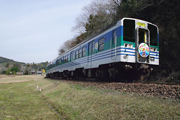 ウララカな春の陽気に誘われて、M団員と18切符握り締め久留里線に今年も走った キハ48「風っこくるり」を撮りに行ってきました。ところが、ヘッドマーク付けてんのは 久留里線レギュラーメンバーのキハ38ですね。キハ48の風っこ仕様車はてぇ〜と キハ38の後ろにくっ付いているんすけどねぇ、毎度お馴染み無計画思鉄流撮り鉄の 為に、撮ったポイントがこれ以上後ろに引けず、4両編成がオーバーフロー。だって、 ’キハ48が先頭で来ると思ったんだもん’アァ〜ア。でもミナサン、全国巡業している 風っこキハ48より、久留里線でしか見られないキハ38の方が貴重かも知れないっす。 その他JRでは最後の3両となったキハ35系キハ30形に、未だ現役タブレット閉塞と 久留里線は実にディ〜プな思鉄好みのローカル線で御座います。 久留里線 上総松丘 2008-3 |