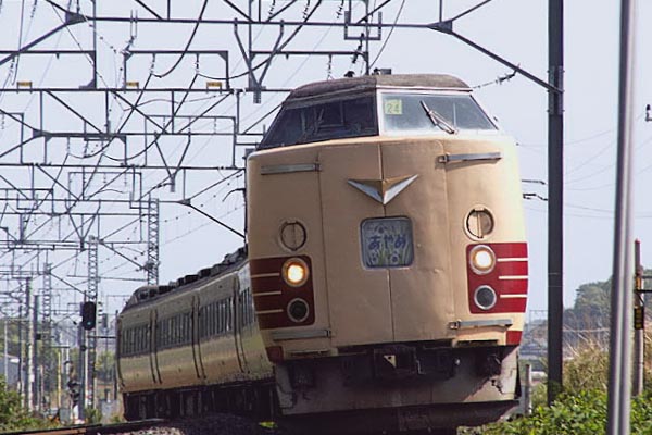 走っていなかったのは、当時としては特急が走る距離ではなかったと言うこともあり、 急行列車とさして到達時間も変わらず、“実質的急行料金の値上げだ”などと評判は イマイチでした。当時はまだ急行も走っていて、うろ覚えではありますが、急行の方は 混んでいても、特急はガラガラだったような気がします。特急「あやめ」は「さざなみ」 「わかしお」に遅れること3年、1975年(昭和50年)の成田線全線電化に伴い東京〜 鹿島神宮間で運転が開始されました。最盛期には5往復の設定がありましたが、今や 定期運用は2往復のみ。しかも上りは朝に2本、下りは夜に2本という設定。これじゃ 総武本線 物井〜佐倉 2005-5 |
