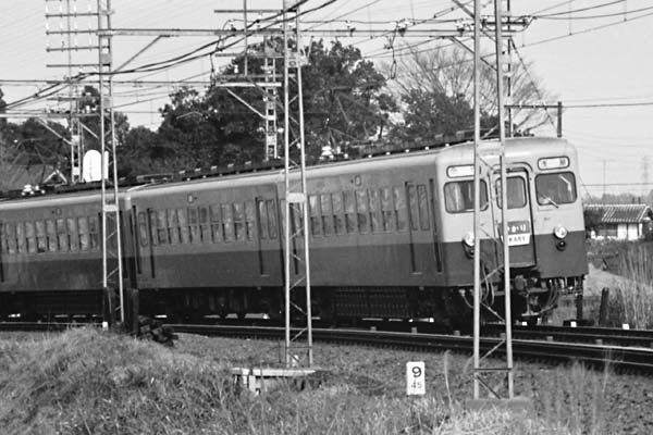 写真もマサニ断末魔の串刺しになっちまいました。コンナ写真じゃはおイカリは必死と 思ったら、串刺しヘッドマークに書いてあるのもナント「いかり」じゃございませんか。 と言う事でヒジョ〜に苦しい言い訳で登場は、東武日光線急行「いかり」でございます。 今じゃJRのマネッコして「ゆのさと」を2006年不定期特急に格上げして有料急行列車 全廃の東武鉄道でございますが、思鉄が若輩の頃は伊勢崎線に日光・鬼怒川線に 吊り掛け5310系、5700系や当時は最新鋭だった6000系の急行列車が様々な愛称を 名乗って走っておりました。情け無い失敗カットでも、40年経って改めてみると鉄道が 庶民の足として行楽地への交通手段として一番輝いていた時代を思い出させますね。 東武日光線 新栃木〜栃木 1968-? |