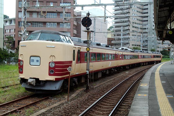 「団体」とはインチキくさいHMですが、車体色の王道国鉄特急色に彩られた189系の 正面幕窓に、ド〜ント表示されているからは「団体」も立派なHMじゃございませんか。 っと、強引に言い張ったけど、コノ手のHMがナントカ○○○号が走るからってんで 企画列車を気合入れて線路っ端で待って、いざ列車が近づいて幕窓に「団体」じゃ やっぱりガックリ来ますけどね。でもこの「団体」号撮るには多大な経費が掛かって いるんですよ。田浦からトンネルを抜け横須賀の留置線に189!カメラだけを持って 慌てて下車、デイバックを車内に置き忘れ。ケ〜タイ、レンズ、財布が・・・あぁ〜あ。 お陰で初めて無札証明書ってぇのを発行して頂きました。 横須賀線 横須賀 2004-9 |