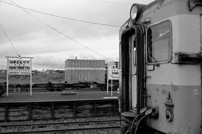 無骨な面構えのキハ22と今ではバスターミナルになり、その痕跡すら残っていない浜頓別の駅名表示板。