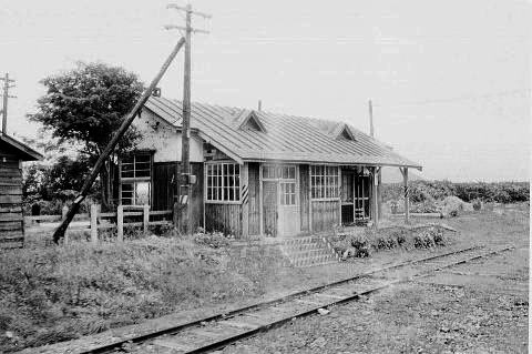 洒落た感じの目梨泊の駅舎、積雪で冬は気付かなかった線路が見える、