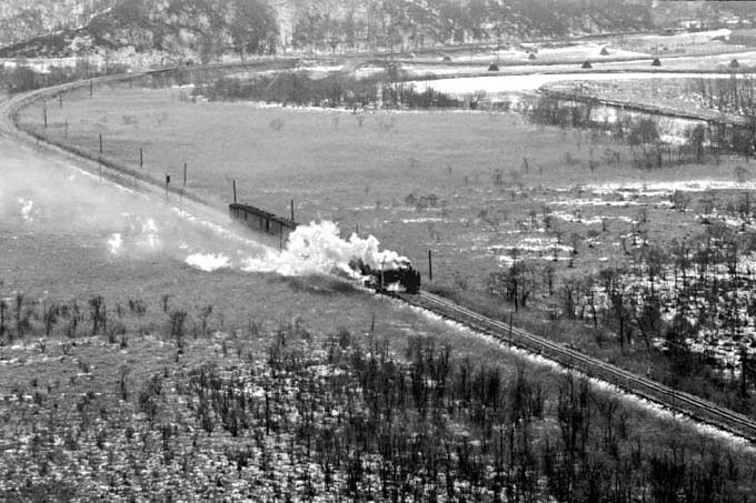 細岡を出発すると左に大きくカーヴをして湿原地帯に、白煙が折からの寒風にサイドに流されていく。