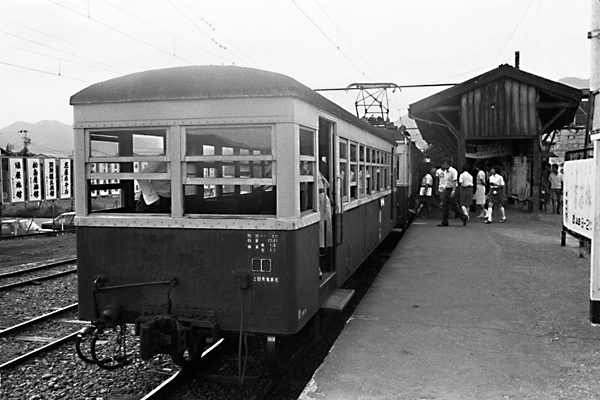 夕方のラッシュでモハに連結されたサハ22、元は丸子鉄道の気動車キハ1。