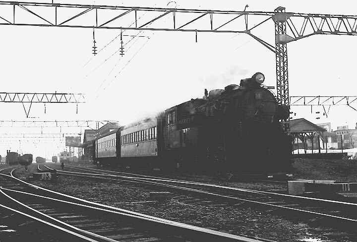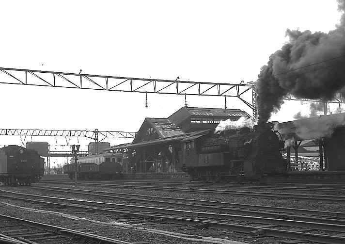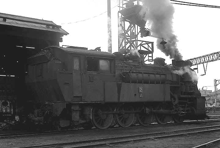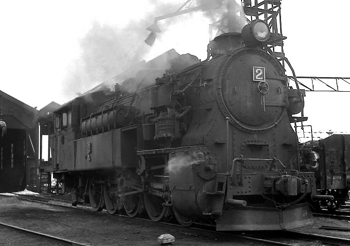 美唄駅構内で入れ替え作業をする2号機、函館本線はまだ電化前でした。
