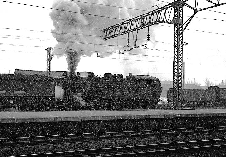 雪の降りしきる美唄駅で入れ替え作業をする4110、今は2号機が東明に保存されています。 |