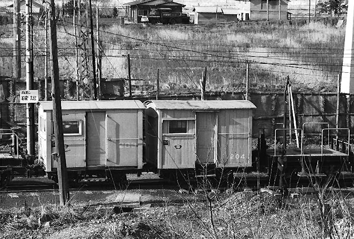 専用線は、江差線の下をアンダークロスしていました。こちらはちょっと大型の人車というか客車かな。