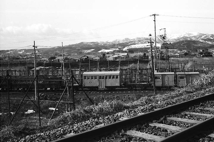 | 函館から江差線で12キロあまり行ったところに、上磯という駅があります。ここは蒸気牽引の 通勤列 車があり、C58牽引の旅客列車や貨物の姿を見ることができました。しかし鉄道ファンの 間では、むしろ日本セメント専用線の方が有名だったかもしれませ ん。少し離れた 鉱山(万太郎鉱山と峩朗鉱山)から石灰石を輸送していたこの鉄道は、道内では珍しい 電化路線で、東洋電機の凸形の電気機関車や40tELな どが活躍していました。中には可愛い 人車もあり、石灰石列車の後部にちんまりと連結されていた姿を思い出します。私が訪れたのは 1972年3月のことですが、夜行「すずらん六号」で函館に着き、その足で上磯に向かいました。 狙いは勿論朝の通勤列車と専用線でしたが、昼過ぎの青函に乗らねばならず、本当 に僅かの 時間の訪問でした。その後も訪れる機会はあったのですが、結局この一回の訪問に終わりました。 この専用線も1989年には廃止されたそうです。 |