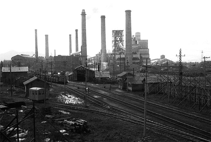 これは入れ替え中でしょうか、後のベルトコンベアは峩朗鉱山から石灰石を運搬するものですが、私が訪問