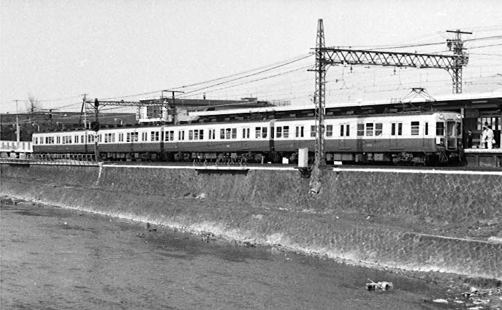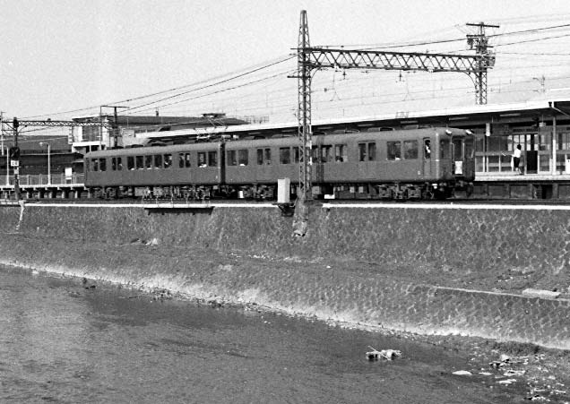 1968,3 京阪七条付近にて 鴨川べりを行く1100系各停。