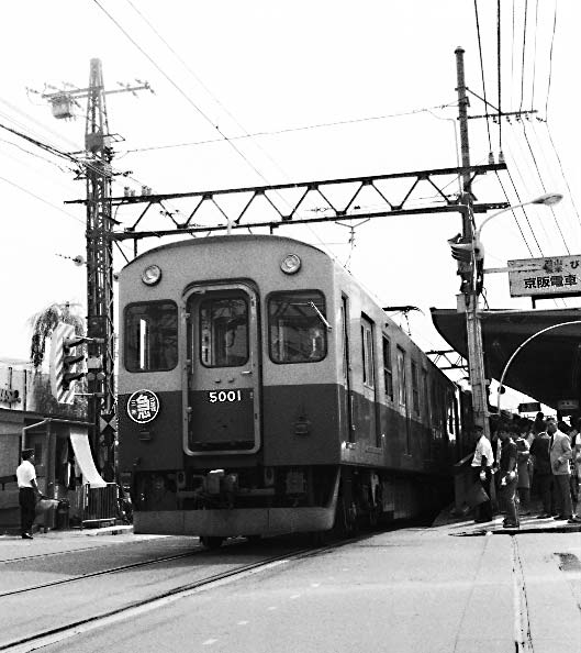 1971,9 京阪四条にて こちらは日本初の五扉車5000系です。