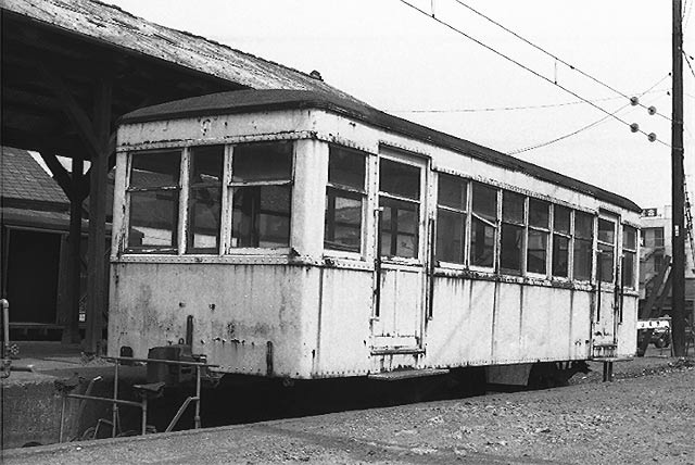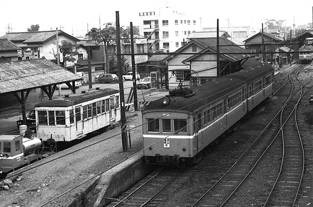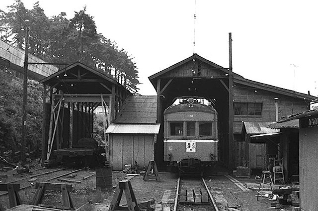 1972,10 流山の車庫で休む車両たち 手前の105は1931年汽車会社製で