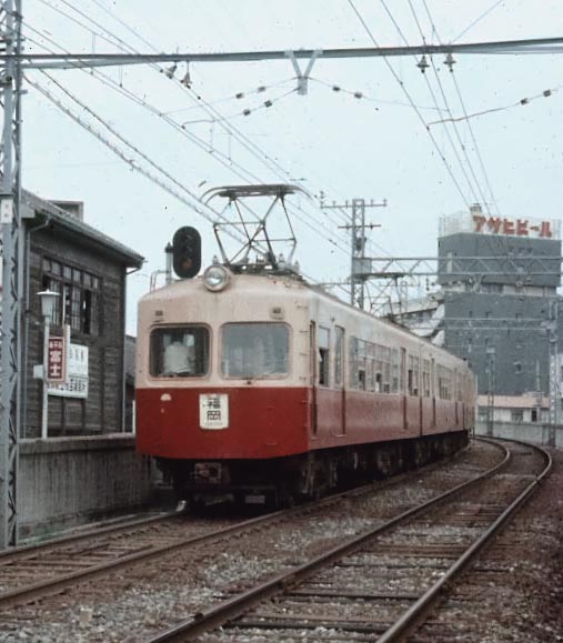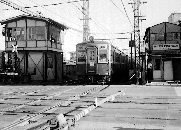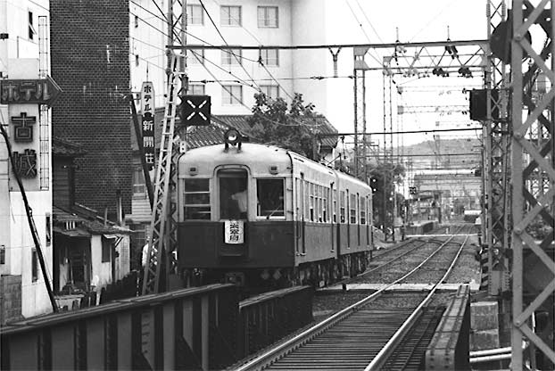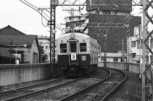 西鉄福岡の高架を降り、薬院に向う下り各停大宰府行き。 1969.8