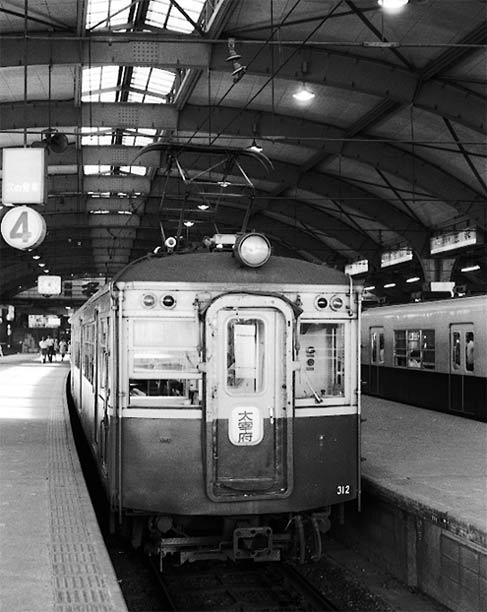 旧西鉄福岡駅で発車を待つ300系各停。 1971.8