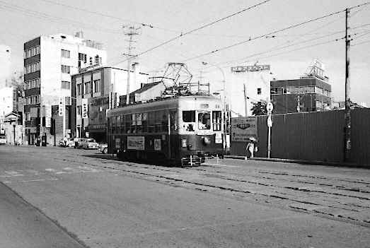 薬院駅の南側では、福岡市内線とのクロスが見られました。 1971.8 |