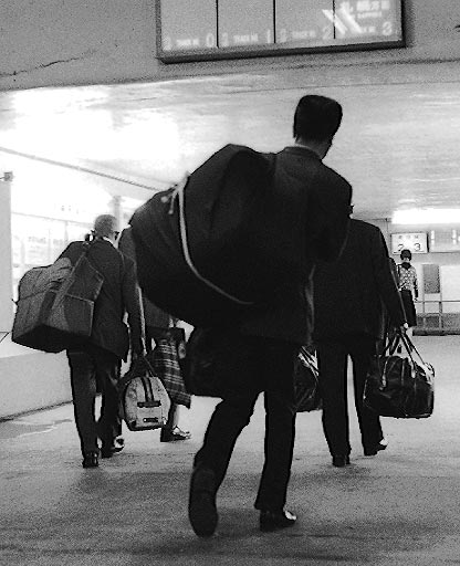 改札はまだ始まらない 行き先札が揺れている この列車に乗り込む人は、荷物も多く 寒い通路を急ぐ