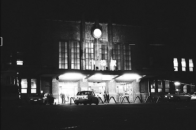 夜の小樽駅、駅舎がライトに浮かびあがる