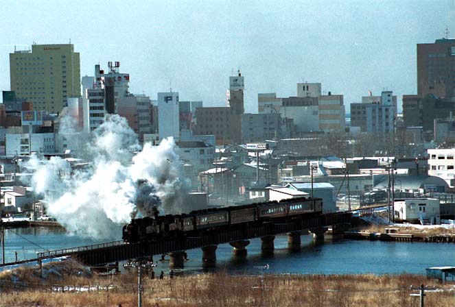 | 釧網本線に蒸気機関車の復活運転が行われたのは昨年のことでした。貴重な冬景色のなかの運転。 まして想い出深い釧網本線ということで、2001年1月、撮影に訪れました。そしてそれは期待以上の 素晴らしい姿を見せてくれたのです。あけて2002年、昨年の光景が忘れられず再び釧路を訪れました。 今から30年ほど前、釧路湿原にC58の姿をもとめて歩き回った日のことが甦ってきます。今では塘路の 三角地点と呼ばれる丘は、当時は名前もまた知る人もほとんどなく、ただ「塘路の丘」と名づけ誰も いない山頂で目の前に広がる光景に感動したものでした。釧路湿原号は単に復活蒸気の運転に 留まらず、想い出探しの旅でもあったのです。 |