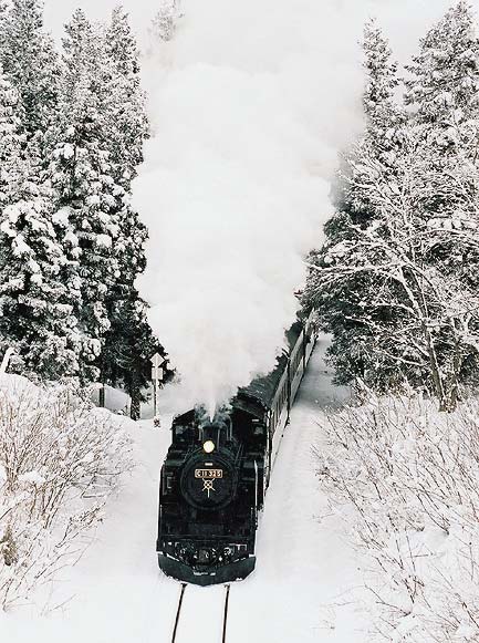 塔寺ー会津坂本 雪晴れの中の蒸気はなんともいえません。 |