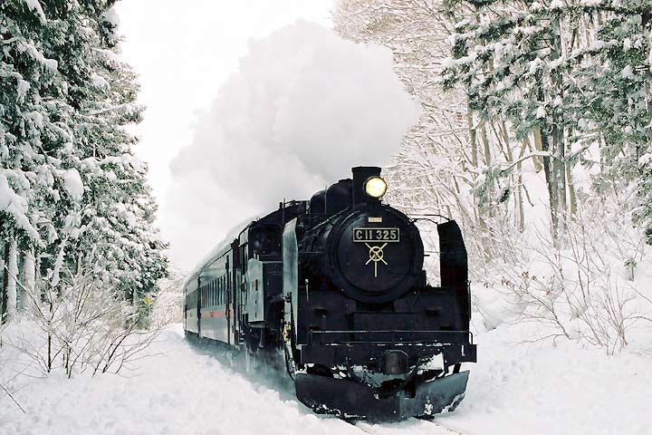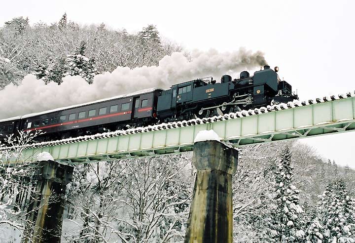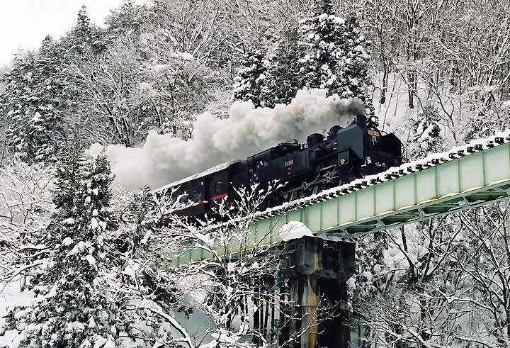 会津柳津ー郷戸 まわりの木々も白く化粧をして、C11を引き立てています。