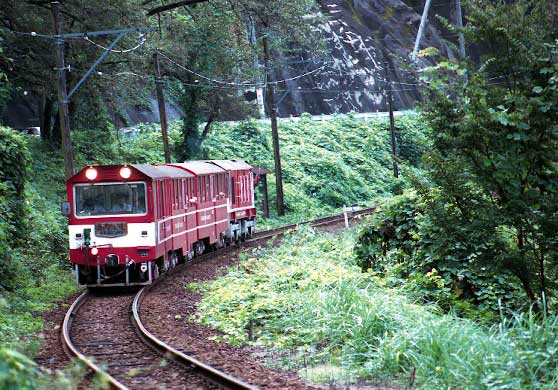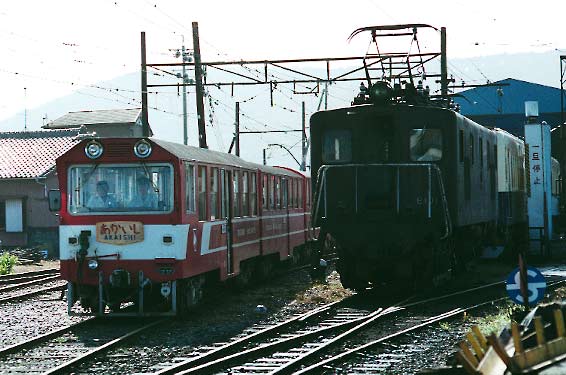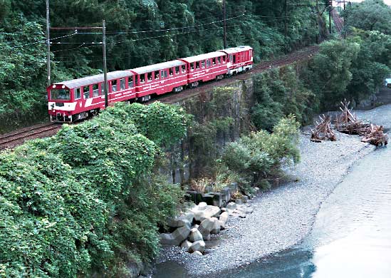 線線内の記録は、ヘッドマークが あまりはっきり写っていないため、今回は二枚だけしかUPしませんでした。しかしアプトが開通して以来初めて井川線を 見る ことができ、また新たな魅力が加わったこの線には強くひかれました。時間がありませんでしたので一部途中の 区間ですが、乗車して雰囲気を楽しむことも出来 ました。 上りの「あかいし」は、次ページに展示してありますので、ぜひご覧下さい |