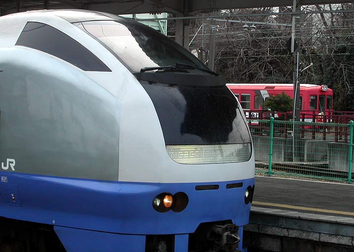 新鋭「フレッシュひたち」の向こう側には日立電鉄の車輌が。 大甕にて |