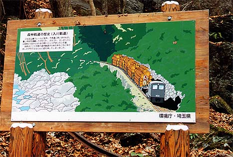 渓谷の入り口にあった森林軌道の歴史案内板。