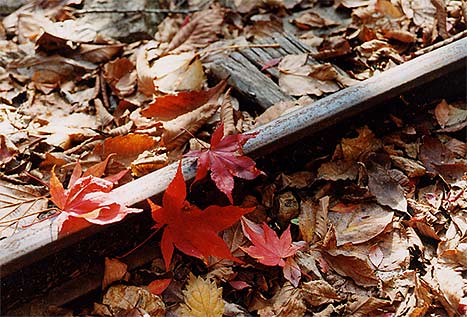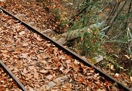 落葉に埋まっていますが、今にも列車が走ってきそうです。