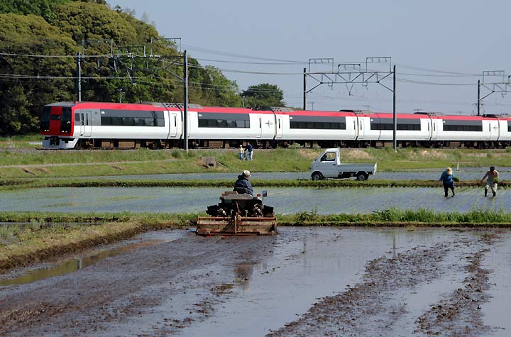 丁度今は田植えのシーズン 昔ながらの田園風景をNEXが駆け抜けて行きます。