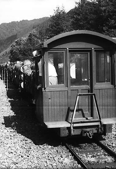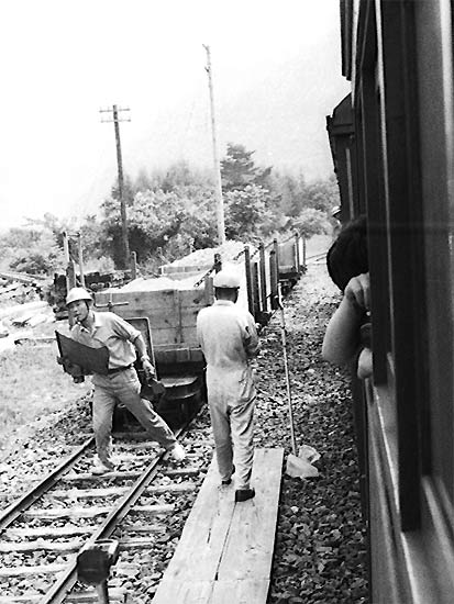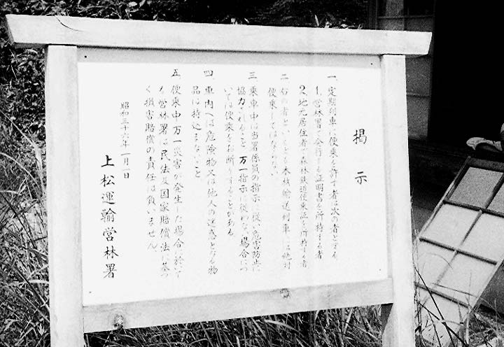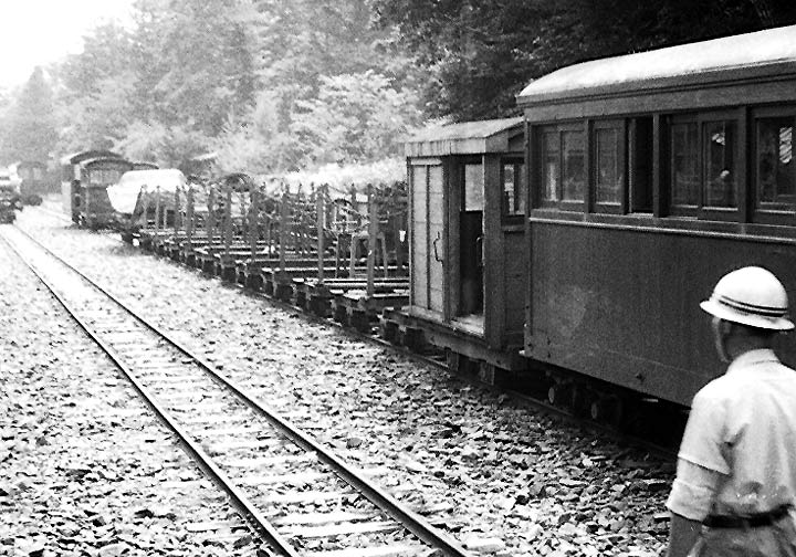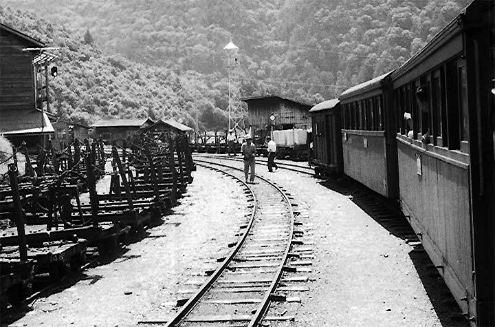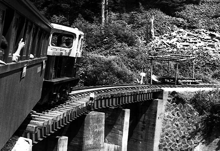 ここから先は、「みやま」での旅の様子です。みやま 号は一日一往復、上松と本谷停車場の間で運行されていました。 途中は川沿いの曲がりくねった路線、停車場では木材満載の運材列車と交換、私が見てもなんとも羨ましい光景ばかりです。 残念ながら私は場所も駅もわかりません。したがって一枚一枚へのコメントは控えさせていただきましたが、 当時の森林鉄道の様子、特に地元の足ともなっていた木曽森林鉄道の様子は偲べるのではないかと思います。