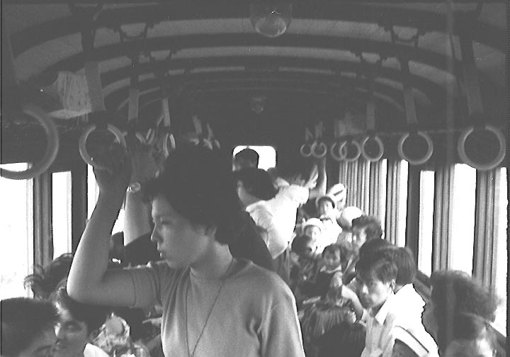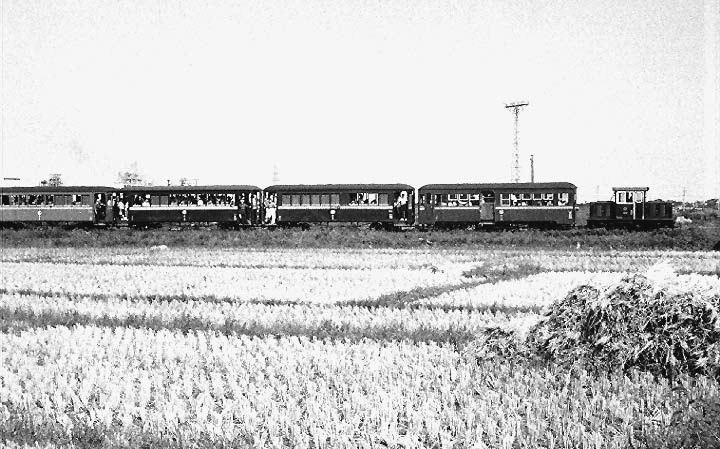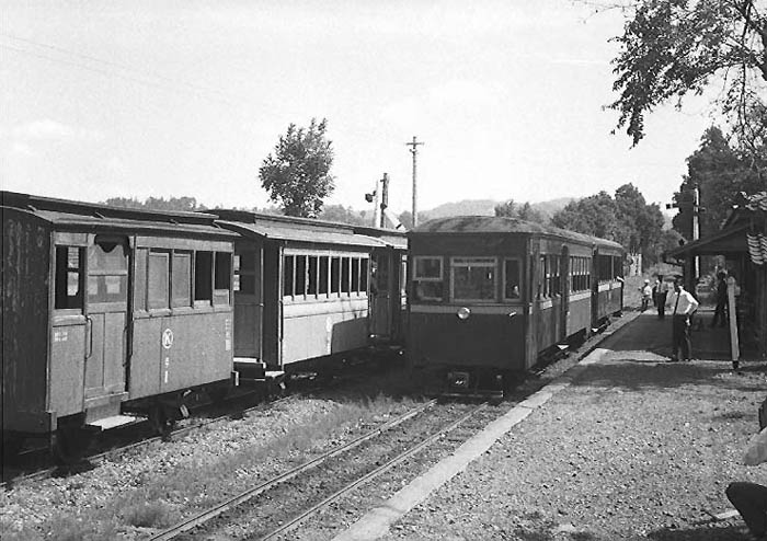 撮影地は不明ですが、鈴なりの乗客に廃止前のつかの間の賑わいが見えます。