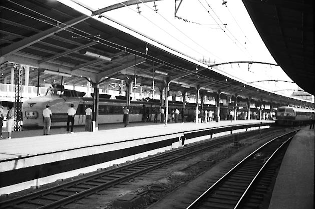 151系「富士」と157系「ひびき」のならび、夢のようなシーンです。左は工事中の新幹線ホーム。