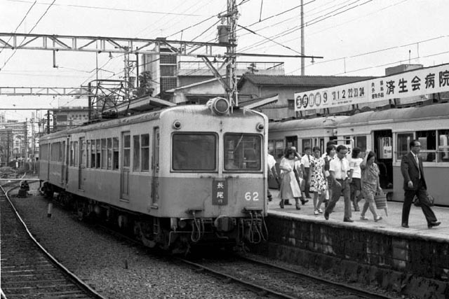 車歴90年弱、日本最古の現役電車の誉れ高い琴電の60形62号車。ルーツは京浜電鉄 1913年天野工場製 デ29形37号車、大東急時代を経て琴電へ1948年にお輿入れ。 戦時中酷使された木造車ですから車体が何年も持つはず無く、5年後の1953年に当時 流行、湘南フェースの車体を自社工場で新造しましたが、現在は1982年に貫通扉付に 改造されています。現在の相棒は宮城電鉄の67号車ですが、写真を撮った当時は同じ 京浜電鉄から来た94号車が相棒で京浜同士の大正コンビで活躍していました。 琴電 長尾線 瓦町 1974-8 |