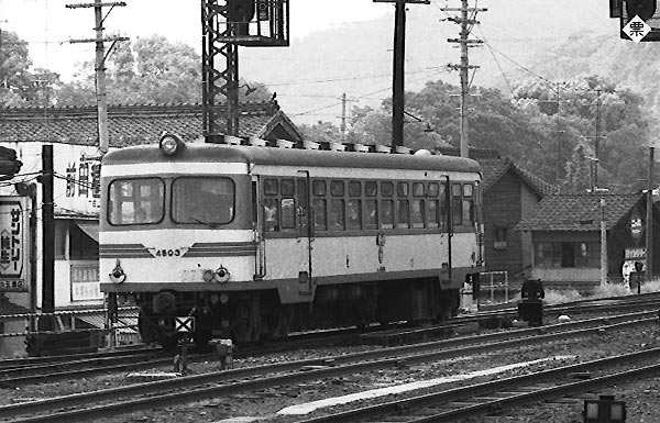 島原鉄道は島原半島をぐるりと四分の三周回る非電化私鉄。雲仙普賢岳の噴火で 一部区間が不通になり、1997年に全通したのは記憶に新しい。現在の車輌は国鉄 4両製造されたが、勿論今は全車廃車。顔こそ違えど、国鉄のキハ17系とはご親戚、 エンジンもキハ17と同じDMH17B、そしてなによりも、島鉄の形式記号キハ4500は 国鉄キハ17の旧形式記号の「キハ45000」とホボ同じなのだぁ。また、写真の4503は 流転の人生を送りながらも、意外とシブトイ車両でございました。 島原鉄道 諫早 1973-5 |