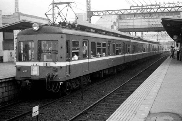 あれぇ?たしか一年半前ぐらい前の湘南フェースに同じ古カビ写真を見たはずだぞ、 なんだ、とうとう湘南フェースもネタ切れで、同じ写真の使いまわしを始めたのか? ナンテことはありませんよ。ヨォ〜ク写真見てくださいね、前にUPしたのはセミクロス 2ドアの元祖ロマンスカー500系、今回のUPは3ドアロングシート400系なんですよ。 しかし、見れ見るほどソックリ、まるで双子の兄弟みたいな両形式の車体ですね。 えっ 京急で400系と言えば正面三枚窓の旧型車じゃないのっと、思っている鉄な人 実は写真の400系、最初は600系として1953年にデビューしましたが、1965〜6年の 大改番で最初の形式を快速特急で鳴らした京急の看板車700→600系に譲りました。 500系と共に京急初の湘南フェースとして登場した400系ですが、製造は全部で32両 後から大量に製造された700系、1000系の影に隠れ、地味湘南フェースに終始して、 1986年を最後に全車リタイヤしました。 京浜急行 京浜(京急)蒲田