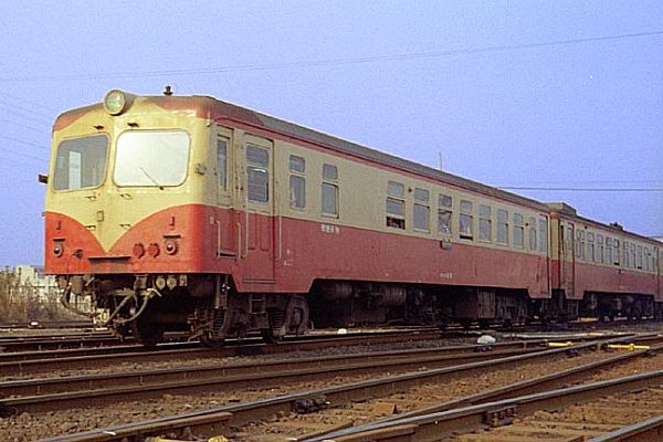 サァ〜今回も、これぞ嘘偽りの無いモノホン湘南フェースDCキハユニ16の登場だぜ、 しかも総天然色と来たもんだ!っと威張ったけれど、実は今回も前回に引き続きの 頂き物。「懐かしの蒸気機関車写真館」の管理人久保様からご提供頂いたお宝です。 さて、このキハユニ16は前回登場のキハユニ15同様、国鉄無煙化の立役者となった 10系気動車の元祖の様な気動車なんですね。最初はディーゼルエンジンで発電機を 動かして台車のモーターを回す電気式気動車キハ44100形として1953年に中間車の キハ41200形と3両固定編成の形で登場しました。しかし、電気式の気動車といえば 今でも世界標準なんですが、煎餅布団の様な日本の線路規格で使うのにはトニカク 重い!そりゃ〜重いはず、エンジン動力を変速機を介して車軸に伝える液体式よりも モーターの数だけ余分な重量が有るわけですから。そんな事で、液体変速機の開発も 終わり、かの有名なキハ17が登場すると、製造から3年で早くも車体は合造車に改造、 動力伝達方式も液体式に変更されてしまいました。所で、電気式のキハユニ15、16の モーターは駆動はナナナント!電車より早く採用された直角カルダンだったそうです。 DMH17のエンジン音とMT40のモーター音が奏でるハーモニー、コレハどんな音色か 一度聞いてみたかったゾ。 (当初電気式モーターの駆動方式を、誤って吊り掛けとコメント致しましたが、) 関西本線 木津