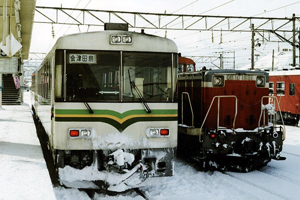 三セク車両です。AT200は会津鉄道が三セクとして開業した1987年にAT100などと ともに新造された車両です。しかし、TADA様までコノ手の面構えを湘南フェースだと 認めたって事は、これからは扁平湘南フェースでも大威張りUP出来るって事ですね。 ところで、このAT200、今は名鉄から鳴り物入りでトレードされたキハ8500の主役を 奪われて仕舞いましたが、開業当時は会津鉄道のピカイチ、シートはオールクロスで AT201とAT202で2両固定、編成にはトイレも完備、観光用として完璧な車両でした。 現在では僚友のAT100はAT500の種車になった車両も出て来ているので、AT200も もし廃車されていなければ、小原庄助さんのラッピングでも施されて、AT500に改造 されたかも知れませんね。 湘南フェース探検団UP車両のランキングに是非、投票して下さいネ。 磐越西線 会津若松