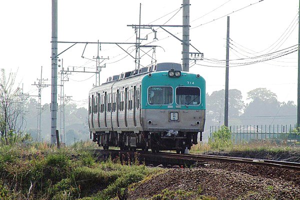 ア〜ァ!次回からまた新たな反則業湘南フェースを考えなくっちゃ。なんて先の事は さておき、井の頭3000系は七色の湘南フェースで活躍しましたが、上毛の700系の 前面は御覧のブルー系の一色に統一されています。しかしこの色はオリジナルにも 確かあった様な色合いですね。もともと中間電動車と制御車しかなかった3000系は 譲渡された各社ともそのままでは運用できず、先頭車の電装や中間車に運転席を 貼り付けて電動制御車化などの改造を施して使用していますが、何故か今回UPの 上毛はもとより、北鉄、松電、両運改造の岳南も律儀にオリジナルと同様の正統派 湘南フェースのままです。同じ様に各地に譲渡された東急電鉄5000系や7000系の 見れば見るほど悲しくなる様な改造後の前面と比べると、元井の頭3000系は本当に 幸せな車両ですね。 湘南フェース探検団UP車両のランキングに是非、投票して下さいネ。 上毛電気鉄道 新屋〜粕川 2004-5 |