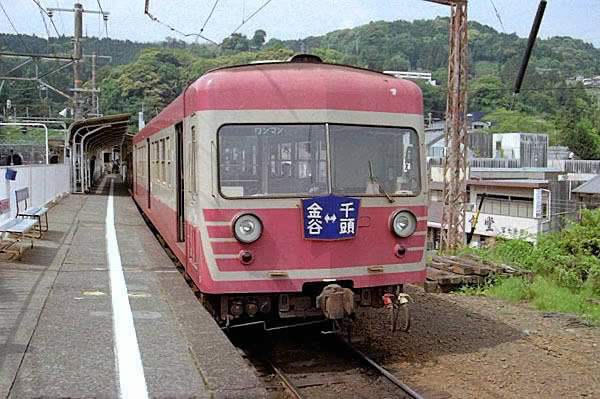 恥も外聞も無く(最初から無いって!)ストライクゾーンをぐっと広げて、お題の目通り 正面2枚窓ならなんでもござれ。セコハン使いまわしの地方私鉄は格好のねらい目。 とくればやっぱり大井川。ひと目見ればお分かりでしょうが、元は伊豆箱根1000系。 1992年に大井川に来てからはMc−Tc編成に改造されました。大井川でファンの目を 楽しませていた1000系でしたが、事故により破損した後は復旧されることなく、魔境 大代川側線で風葬の身となってしまいました。 湘南フェース探検団UP車両のランキングに是非、投票して下さいネ。 大井川鐡道 金谷 1998-5 |