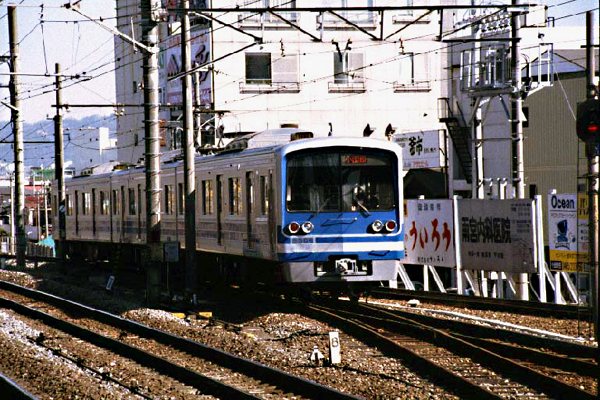 ちょいと昔はイワクありげな前歴を持った吊り掛けバッカリが活躍して、鉄ちゃんを 楽しませてくれた大雄山線も今じゃ立派な郊外電車。冷房率も無論100パーセント 営業車は全部オクメ湘南フェースの銀箱5000系に統一されて、趣味的な面白みは 消えてしまいました。しかし、一般乗客にとってはアッジイ夏に非冷房で乗り心地が 悪い吊り掛けに乗せられては敵いません。コレも時の流れ、仕方がありません。 唯一の救いはコデ165と言う吊り掛け事業車が健在なこと。このコデ165は元相鉄の 2000系ですから、人気者モニ2000とは生き別れの兄弟みたいな関係なんですね。 なにかコメントが5000系の事より、コデ165ことバッカリになってしまいましたね、でも オジサン鉄は銀箱湘南フェースにはイマイチ乗り気になれませんので、お許しを。 湘南フェース探検団UP車両のランキングに是非、投票して下さいネ。 伊豆箱根大雄山線 小田原 2002-2 |