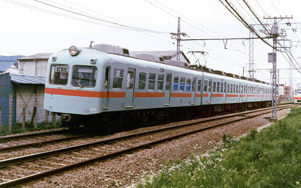 呼んでる、「汽車・電車1971〜」TADA様御提供の湘南フェース、西鉄1000系です。 湘南探検団じゃ、今や当たり前の二度目の登場と相成った1000系ですが、最初に 登場した1000系は国鉄のC59やC61を向うにまわして、筑紫平野をぶっ飛んでいた 特急列車で活躍していたスターの時代。そして、2度目の今回は主役の座を後輩に 奪われ、乗降ドアを増設し、クーラーを付け、主役の証だった紺に黄色の車体色から 一般車の標準色に塗りえられて通勤通学客の足となって運用に勤しむ1000系です。 しかし、流石に元は特急車格下げされたとはいえ、近頃流行の銀箱電車なんかとは 違い何処と無く車両としての気品を感じるのはオジサン鉄だけでしょうか? ところで、ミナサンァ〜ン画面の右側にチラッと見える2000系に気付きましたかぁ〜、 1000系から主役の座を奪った張本人ですね。その2000系も今や8000系に主役を 奪われてしまいました。唯一の救いは8000系が銀箱電車じゃ無いって事ですかね。 湘南フェース探検団UP車両のランキングに是非、投票して下さいネ。 西鉄大牟田線 雑餉隈 1986-8 |
