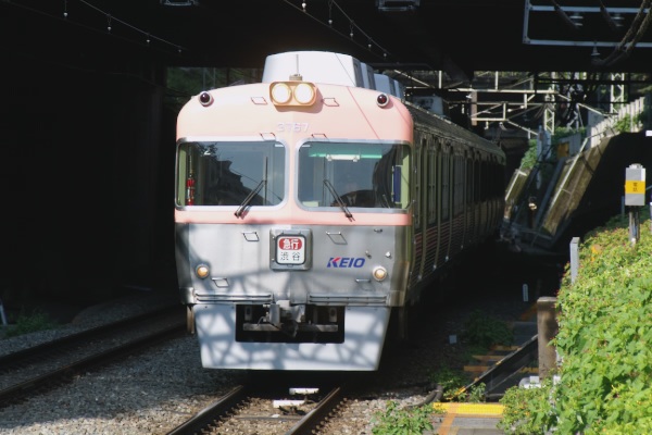 今でも井の頭線に乗れば普通に見られレアでもナンデモございませんが、スリムな 断面で片開き乗降ドアの一次形や非冷房の原型2次形はとうの昔にUPしちゃたし、 地方私鉄に譲渡された3000系もミンナ使い果たして仕舞いました。ってな訳で唯一 残ったのがチョッとオッカナイ顔に整形されちまった、リニューアル3000系なんです。 デビュー当時はそのままじゃ、味も素っ気も無い無塗装ステンレス製車体に変化を つける為、7色の強化プラスティックを前面に付け「ステンプラカー」と呼ばれました。 現在も前面は見た目当時と同じ「ステンプラカー」ですが、オッカナイ顔に整形された 3000系の前面上半分は普通鋼に塗装をしたモノに変ってしまい「ステンプラカー」 ならぬ、「スティールプラカー」?になっちまいました。それでも、行き先表示が未だ 昔からのお約束の位置にLED化にもならないで、方向幕で残っているのがアナログ 大好きのオジサン鉄には嬉しいっすね。 (譲渡された3000系はコチラをクリック 上信 岳南 北鉄 松本電鉄) 湘南フェース探検団UP車両のランキングに是非、投票して下さいネ。 京王井の頭線 明大前 2004-10 |