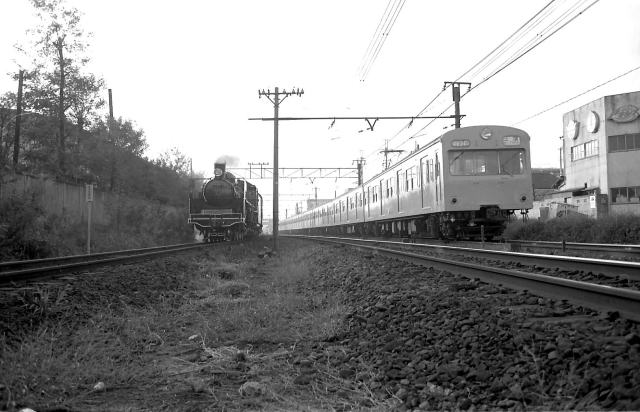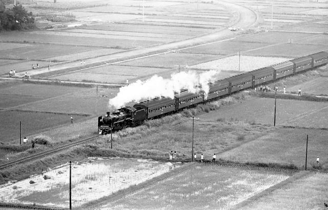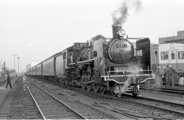 | 梅小路入りを前にしたC571は、鉄道100年を記念して総武・成田線を走りました。 C571は以前千葉に配属された時期もあったそうですが、さすがにそんな頃は私も 知りません千葉のC57が消えて3年あまり、久しぶりに走るC57を追っかけました。 (撮影1972.9/28〜10/1) |