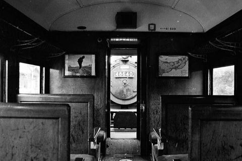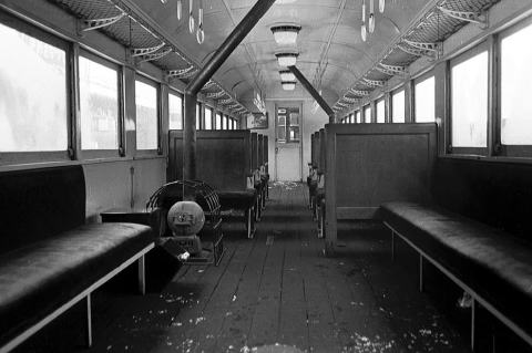 【大夕張鉄道 スハニ6】 人のいない車内でダルマストーブが盛んに燃えてます。