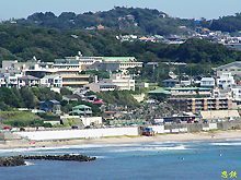 七里ガ浜沿いを走る 鎌倉高校前 |